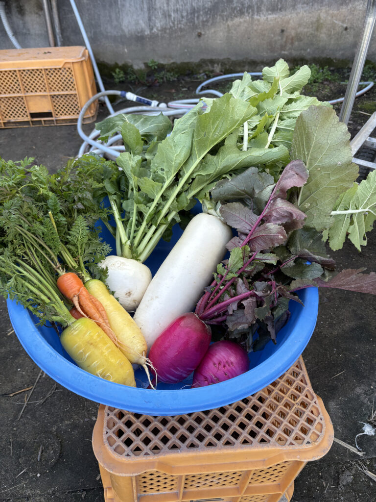 畑ではだいこんやにんじん、かぶを収穫させていただきました。